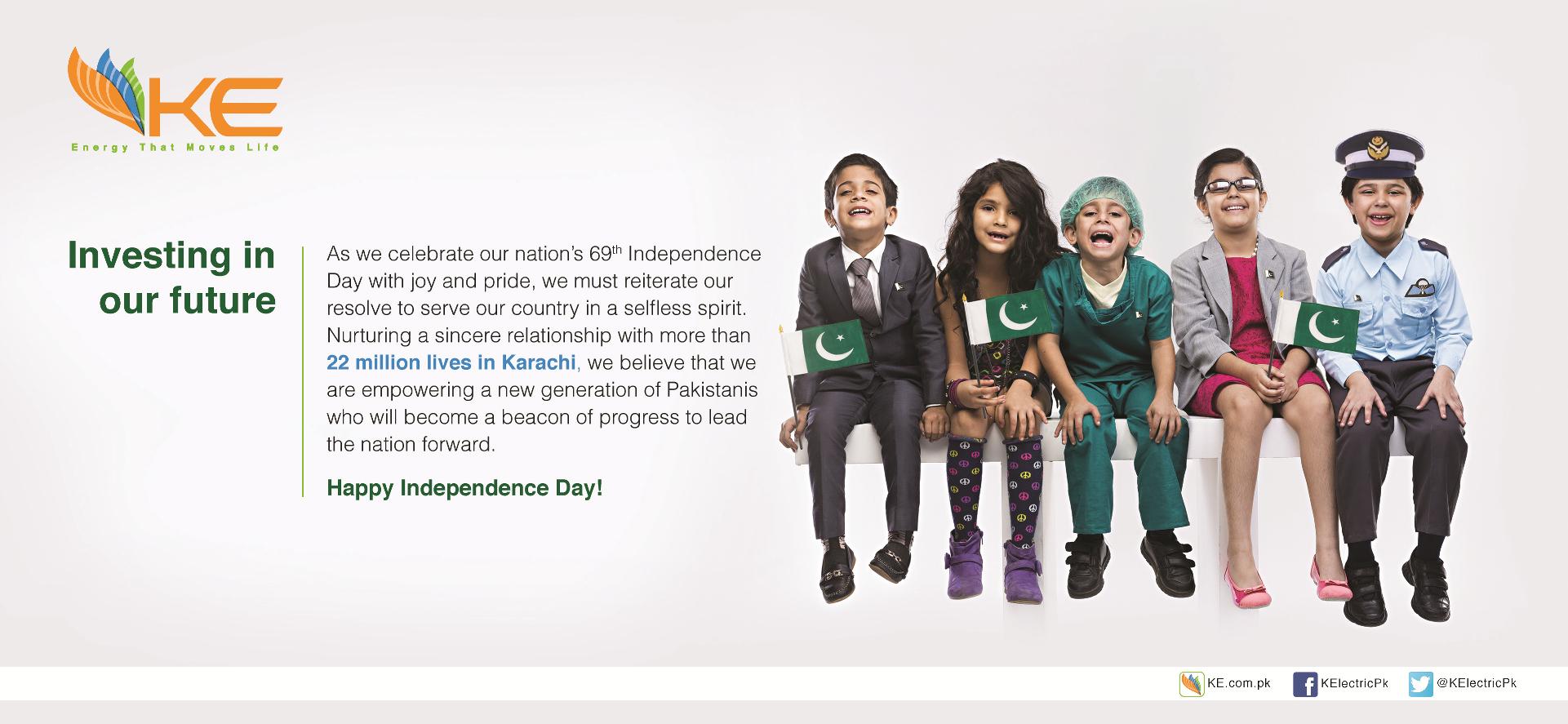 Empowering the new generation of Pakistan for a better tomorrow. KE wishes Independence Day to all. pic.twitter.com/ZFvo86S0S8 — KE (@KElectricPk) August 13, 2015
